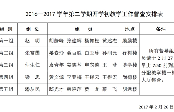 2016—2017學(xué)年第二學(xué)期開學(xué)初教學(xué)工作督查安排