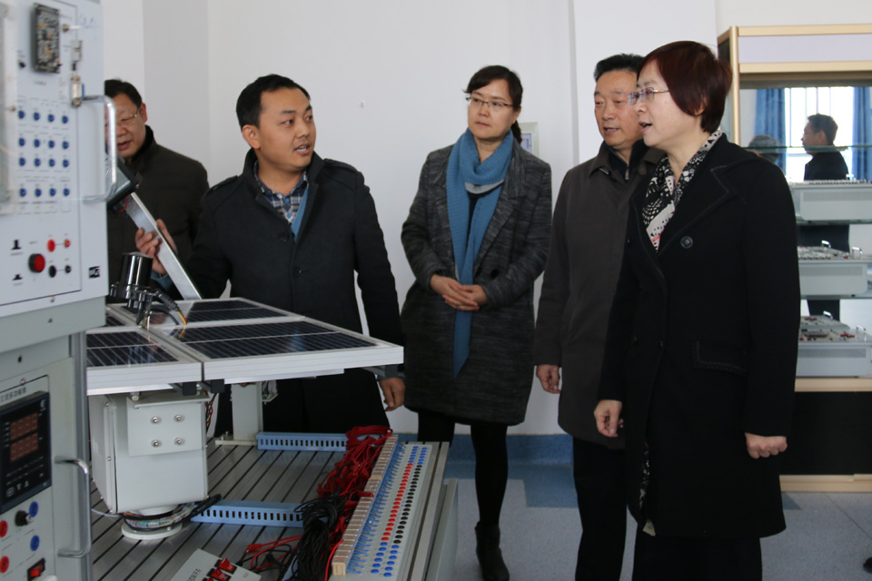 王海燕、王雁一行參觀了我院能源工程系熱工實驗室、電氣綜合實驗室、光伏發(fā)電系統(tǒng)實驗室、光伏發(fā)電系統(tǒng)仿真與測試實驗室、光伏器件生產(chǎn)實驗室和醫(yī)學(xué)實驗實訓(xùn)室、生命科技館、無紙化考試中心等地,就實驗實訓(xùn)設(shè)備的功能和在教學(xué)中的應(yīng)用做了詳細了解。