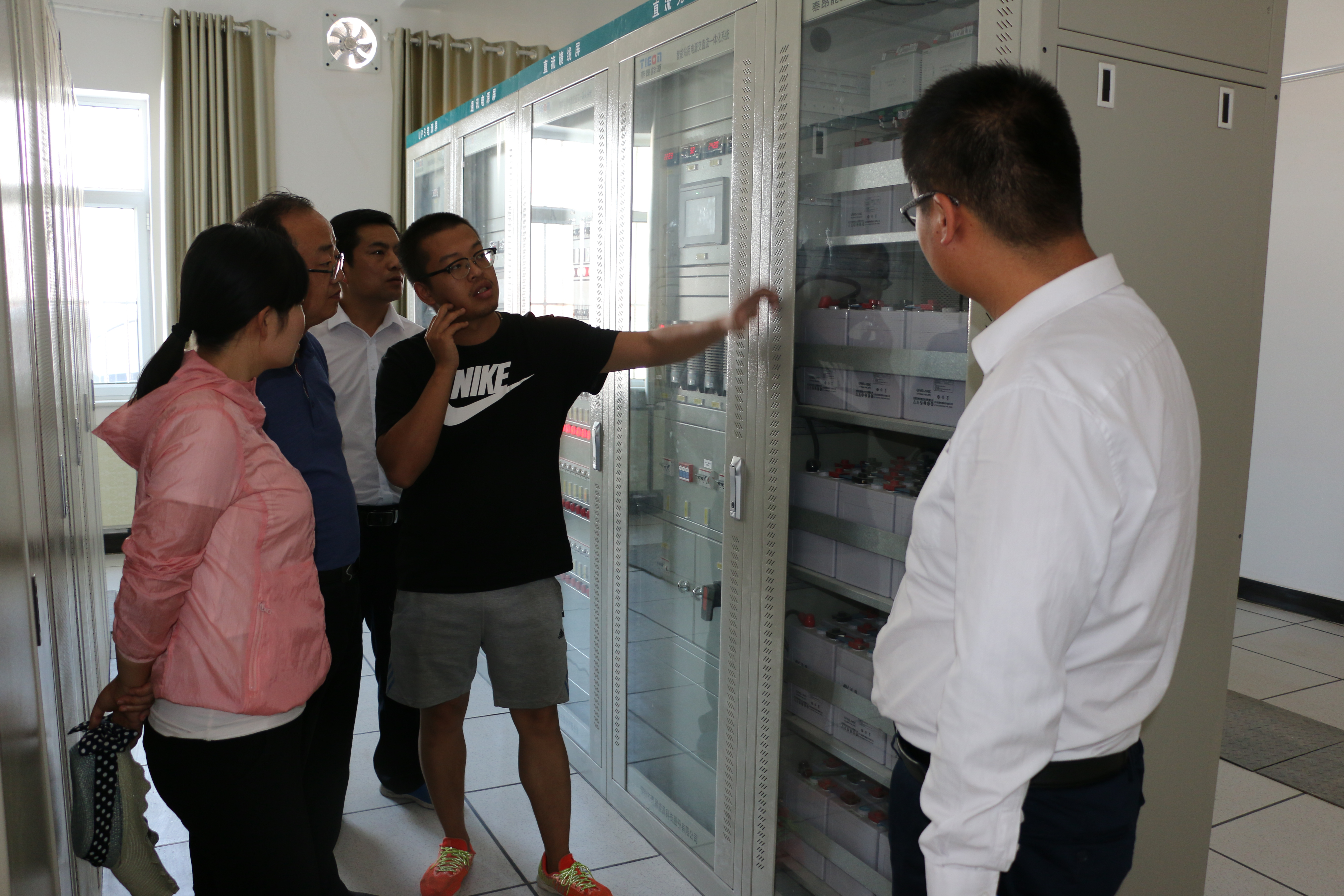? ? ?全體教師在電站技術(shù)人員帶領(lǐng)下,依次深入值班調(diào)度室、控制柜室、SVG室(無功功率補(bǔ)償)、110升壓變電站、開關(guān)柜室以及光伏陣列進(jìn)行觀摩學(xué)習(xí),全體教師在調(diào)度室查看監(jiān)控系統(tǒng),查看分析設(shè)備運(yùn)行情況等,通過現(xiàn)場培訓(xùn)學(xué)習(xí),使老師們近距離熟悉了光伏支架,組件陣列、逆變器、控制器、匯流箱、配電柜等設(shè)備的安裝施工,實踐學(xué)習(xí)了光伏系統(tǒng)集成設(shè)計以及并網(wǎng)技術(shù)等,特別是對光伏電站運(yùn)行安全操作規(guī)程進(jìn)行了系統(tǒng)掌握。