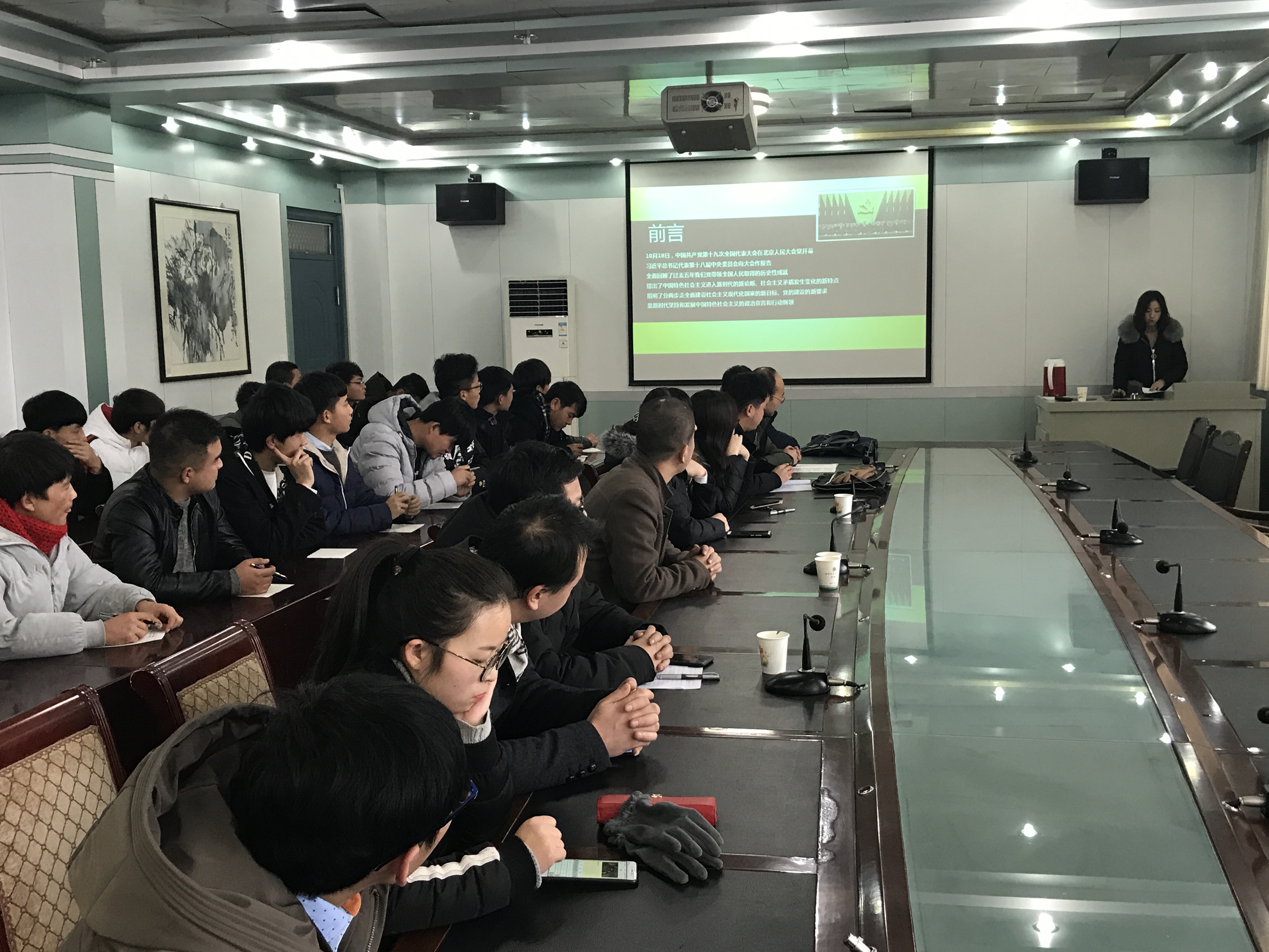 根據(jù)《中共武威職業(yè)學(xué)院委員會關(guān)于深入學(xué)習(xí)宣傳貫徹黨的十九大精神的通知》精神,1月4日下午,建筑工程系系邀請思政教研室侯傾老師,在博學(xué)樓二樓會議室,為全系黨員、教師、入黨積極分子和團學(xué)干部做關(guān)于學(xué)習(xí)貫徹黨的十九大精神宣講。會議由系黨總支書記聶百勝主持。