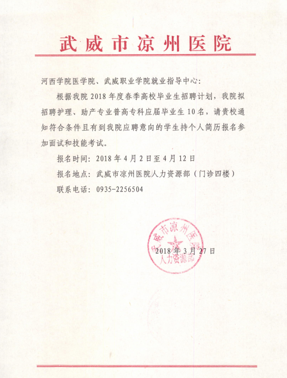 武威市涼州區(qū)醫(yī)院招聘公告