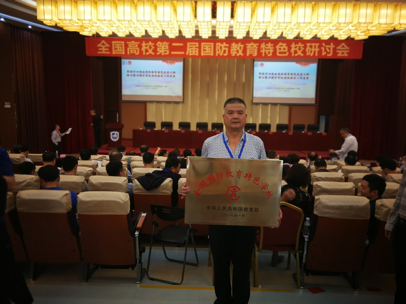 在會上,中國高等教育學會國防教育工作委員會組委會向?qū)W院頒發(fā)了“全國國防教育特色學?!迸?。