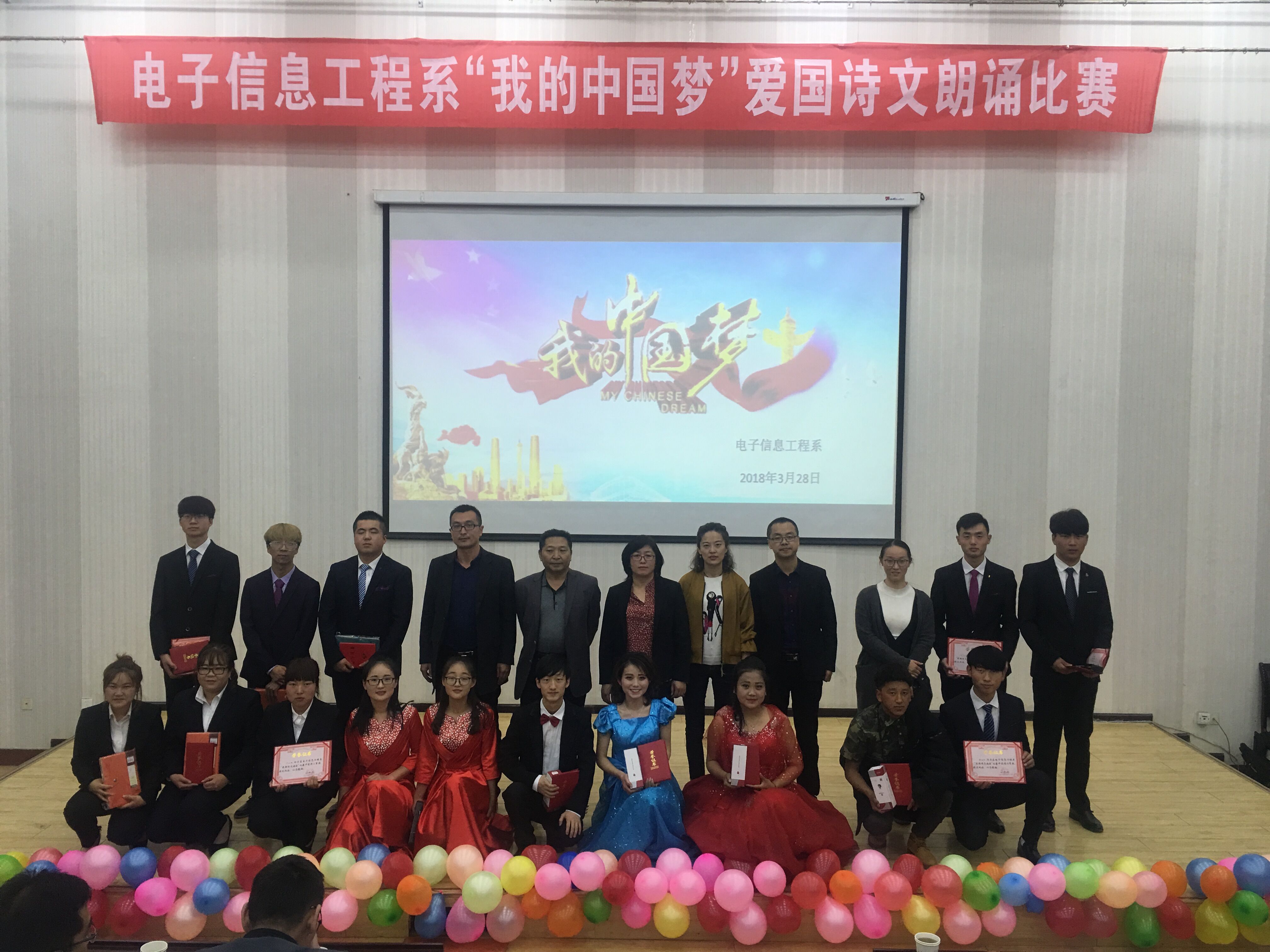 3月28日,電子信息工程系在正德廳舉辦了“我的中國夢”愛國詩文朗誦比賽。活動得到了系領(lǐng)導(dǎo)的高度重視和大力的支持,朗誦選手全情投入,詩詞韻澤校園,本次朗誦比賽有10個(gè)參賽隊(duì),17級計(jì)算機(jī)網(wǎng)絡(luò)大專班參賽隊(duì)榮獲比賽一等獎(jiǎng)。