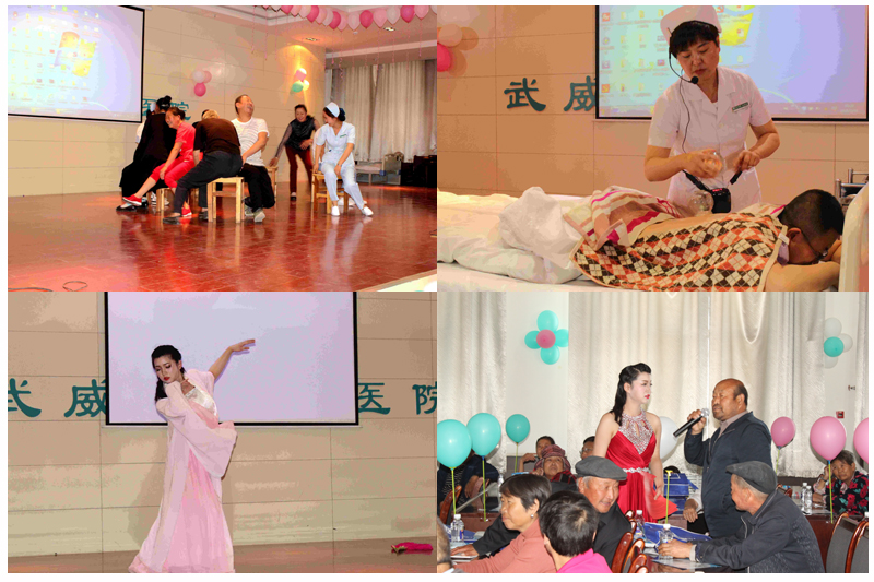 活動中穿插著文藝表演、醫(yī)患同臺小游戲和中醫(yī)特色技術(shù)演示等節(jié)目。腎病腫瘤科護士傅惠梅為大家表演了古典舞蹈《涼涼的月亮》她用優(yōu)美的舞姿表達(dá)了美好的祝愿。血液透析中心的護士們表演了《內(nèi)瘺鍛煉護理操》,為大家展示了一套簡單實用的保健體操,方便大家術(shù)后鍛煉。腎病科護士們表演表演的健康韻律操《火花》,醫(yī)患同臺表演的 “搶凳子”、“拋繡球”小游戲,引得了現(xiàn)場觀眾的熱烈掌聲。腎病科李文玲等人在舞臺上演示的中醫(yī)特色治療技術(shù)《溫灸刮痧》、《拔罐療法》,把觀眾帶到了神奇的中醫(yī)世界。由腎病科醫(yī)生們集體表演的散文詩朗誦《幸福是一種內(nèi)心的穩(wěn)定》,把聯(lián)誼會推向高潮……