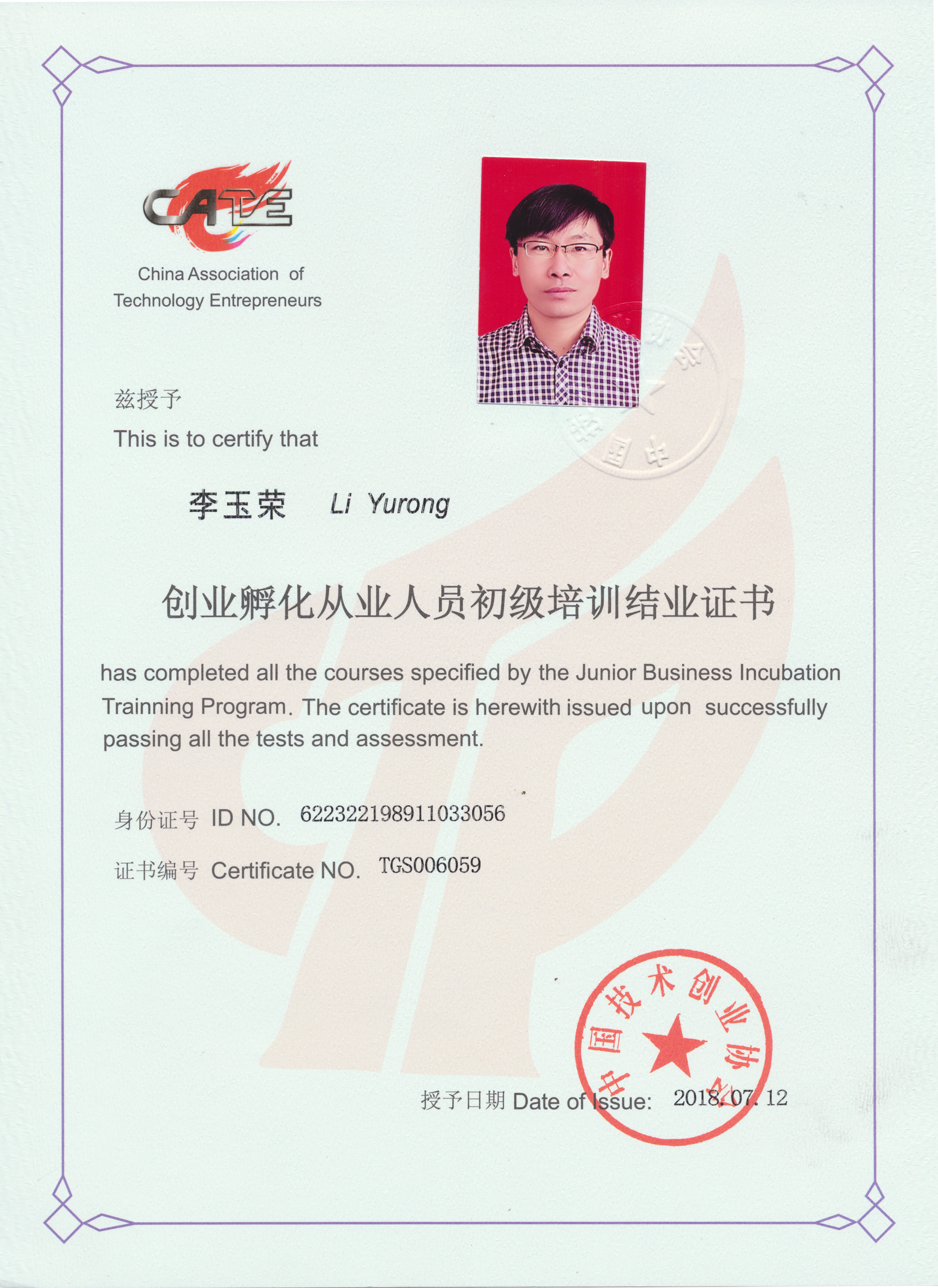 創(chuàng)業(yè)孵化從業(yè)培訓(xùn)結(jié)業(yè)證書