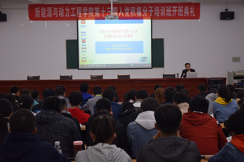 10月14日晚,新能源學(xué)院辦公室黨支部書記任陶在明德樓001教室作學(xué)習(xí)黨的十九大精神主題報(bào)告,98名入黨積極分子和45名發(fā)展對(duì)象認(rèn)真聆聽了此次報(bào)告。
