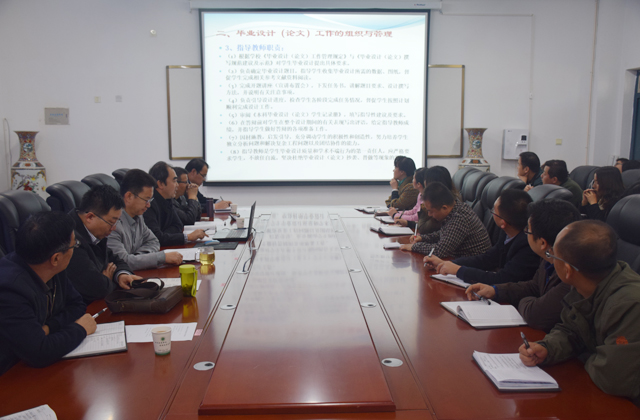 畢業(yè)設計是學生在校學習的最后一個環(huán)節(jié),也是最重要的一個環(huán)節(jié)。使學生由學校學習理論知識向社會實踐過渡轉變的一個重要環(huán)節(jié),也是對所學知識綜合應用的一個過程。副院長姚翔飛要求全體教師認真學習領會,深入研究,將各位專家教授講解的內(nèi)容內(nèi)化吸納,積極承擔并高質量的完成學院2017屆畢業(yè)生的畢業(yè)設計指導工作。為學院不斷提升教育教學水平,奠定堅實的基礎。