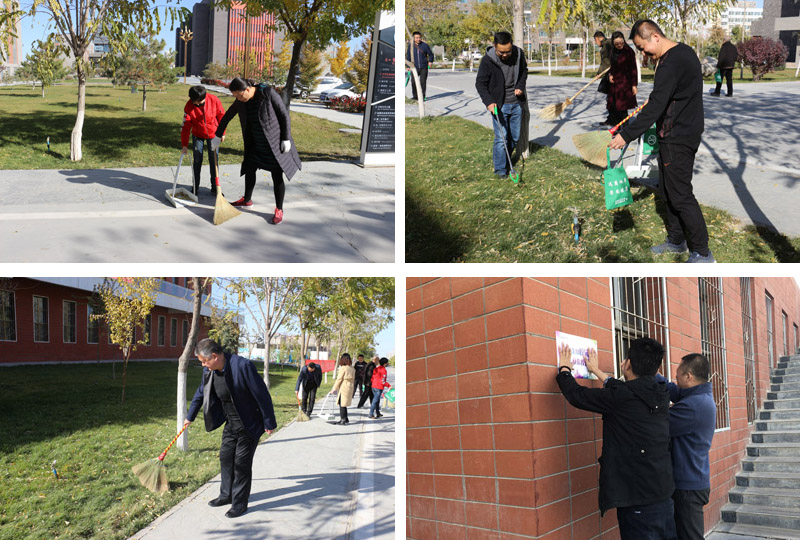 支部全體黨員在大學(xué)生活動(dòng)中心門口、風(fēng)雨操場及校園馬路清掃落葉和垃圾,并對(duì)沿線衛(wèi)生死角進(jìn)行清理,對(duì)不文明行為進(jìn)行即時(shí)勸導(dǎo)。在教學(xué)樓、活動(dòng)中心、公寓樓、食堂等建筑物的醒目位置張貼20余張“創(chuàng)建文明校園”、“禁止吸煙”等標(biāo)志。通過開展“創(chuàng)建文明校園”活動(dòng),進(jìn)一步提升我院“創(chuàng)建文明城市”迎檢和“創(chuàng)建文明校園”活動(dòng)效果。