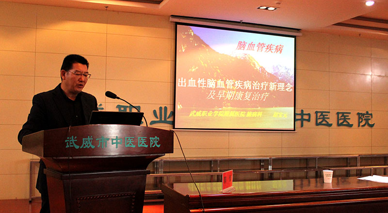 為提高醫(yī)務(wù)人員對于腦病(腦卒中)的診療和康復(fù)訓(xùn)練水平,推進(jìn)醫(yī)院腦卒中中心的籌備建設(shè),學(xué)院附屬醫(yī)院于11月11日上午,在內(nèi)科七樓會議室舉辦甘肅省中醫(yī)藥繼續(xù)醫(yī)學(xué)教育項(xiàng)目:腦病診療康復(fù)培訓(xùn)班。醫(yī)院副院長宗武山主持培訓(xùn)班開班儀式,副院長毛照海致辭歡迎蘭大二院2位神經(jīng)內(nèi)科專家講學(xué)指導(dǎo)工作。醫(yī)院各科室二百余名醫(yī)療骨干參加腦病診療康復(fù)培訓(xùn)班,聆聽學(xué)術(shù)報(bào)告。