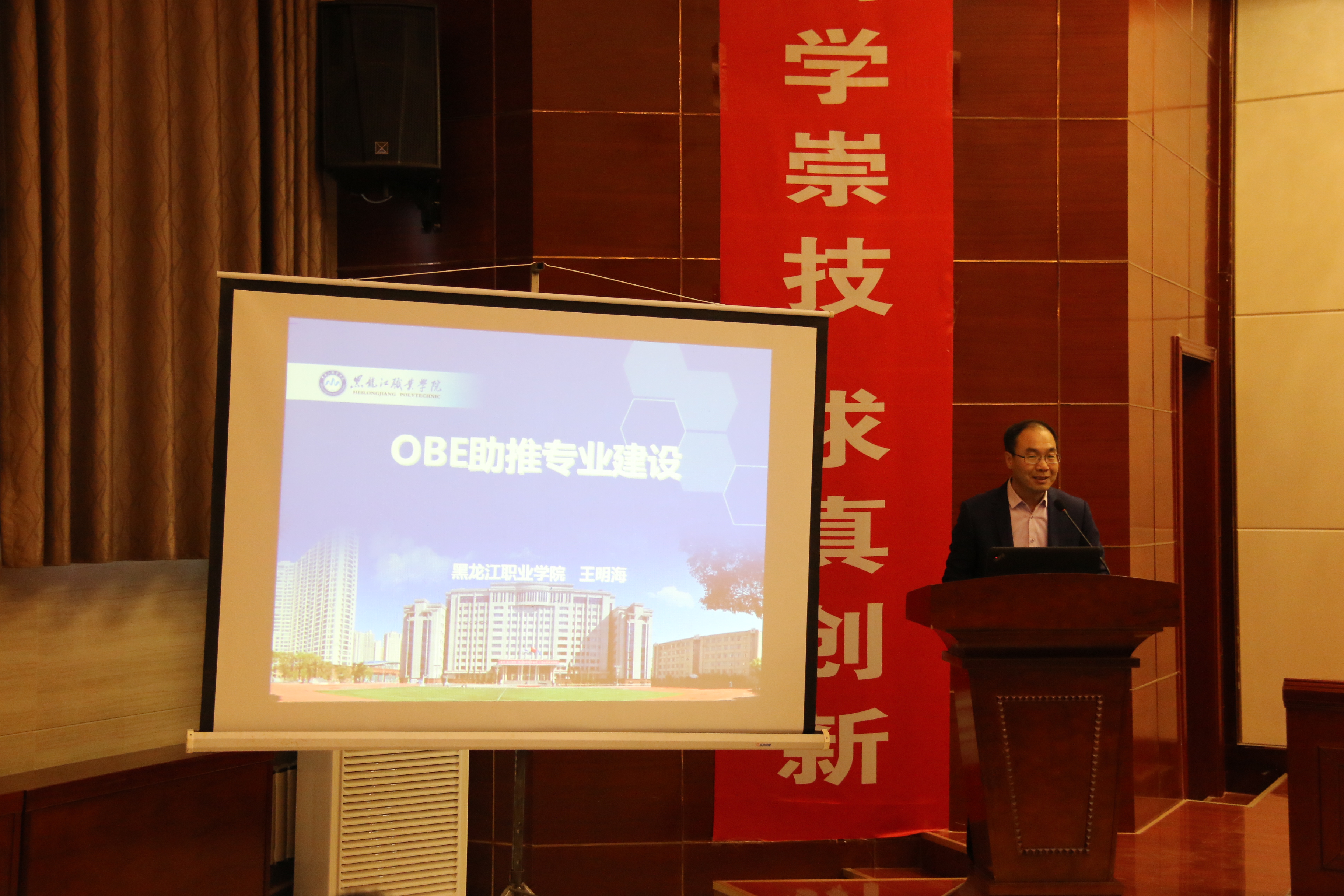 王明海教授以“成果導(dǎo)向教育(OBE)助推專業(yè)建設(shè)”為題作了專題報(bào)告。他結(jié)合自身多年的實(shí)踐經(jīng)驗(yàn)和研究成果向與會(huì)者回顧了黑龍江職業(yè)學(xué)院成果導(dǎo)向課程開發(fā)歷程,從定義成果、設(shè)計(jì)課程到教學(xué)授課、評(píng)定結(jié)果、決定進(jìn)階五個(gè)方面系統(tǒng)闡述了成果導(dǎo)向課程開發(fā)與實(shí)施路徑,為參會(huì)高職院校教學(xué)改革提供了參考方向。
