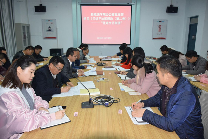 為貫徹落實(shí)黨的十九大精神和《習(xí)近平談治國理政(第二卷)》中關(guān)于堅(jiān)定文化自信的相關(guān)精神,11月29日,新能源學(xué)院辦公室黨支部組織開展集中學(xué)習(xí)和交流會(huì),支部書記任陶主持會(huì)議,全體黨員參加了會(huì)議。