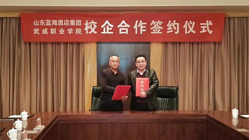 洽談結(jié)束后,潘從民代表武威職業(yè)學(xué)院與山東藍(lán)海酒店集團完成了校企合作簽約。