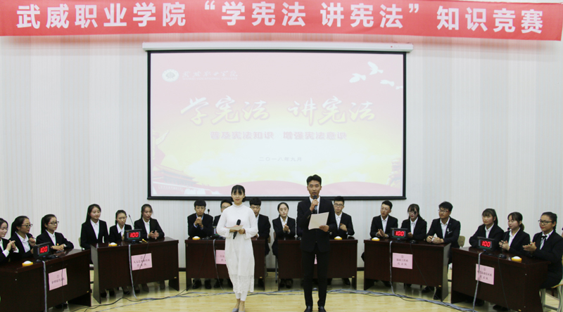 9月12日晚,院學(xué)生會(huì)在正德廳舉辦“學(xué)憲法、講憲法”知識(shí)競(jìng)賽,組織人事處副處長(zhǎng)魏全民、宣傳統(tǒng)戰(zhàn)部副部長(zhǎng)史子新、院團(tuán)委副書(shū)記高鵬堂及200多名學(xué)生代表觀看了比賽。
