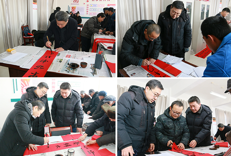 1月9日,學(xué)院扶貧幫扶點(diǎn)古浪縣黃花灘8號(hào)移民點(diǎn)熱鬧非凡,人文藝術(shù)教育系黨總支開展了一場(chǎng)喜慶活潑的“喜迎佳節(jié)、送春聯(lián)文化進(jìn)萬家”主題黨日活動(dòng),村委會(huì)內(nèi)外圍滿了欣賞書畫的干部群眾。