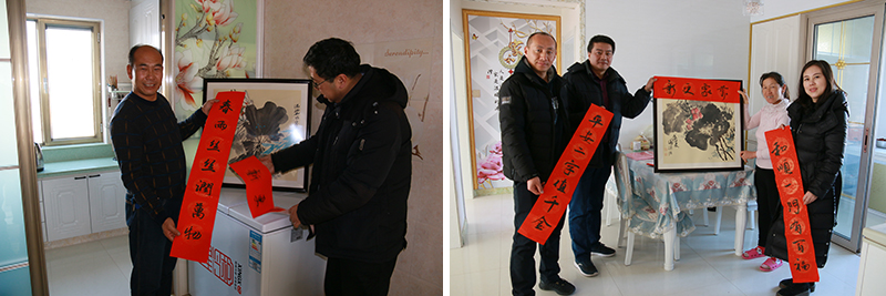 在寫完300余幅春聯(lián)后,幫扶干部將春聯(lián)、繪畫作品送到幫扶對(duì)象家中,將新春的祝福和慰問一一送達(dá),與他們交心談心拉家常,傳達(dá)中央的各項(xiàng)會(huì)議精神及惠民政策,確保貧困戶過一個(gè)溫暖祥和的春節(jié)。