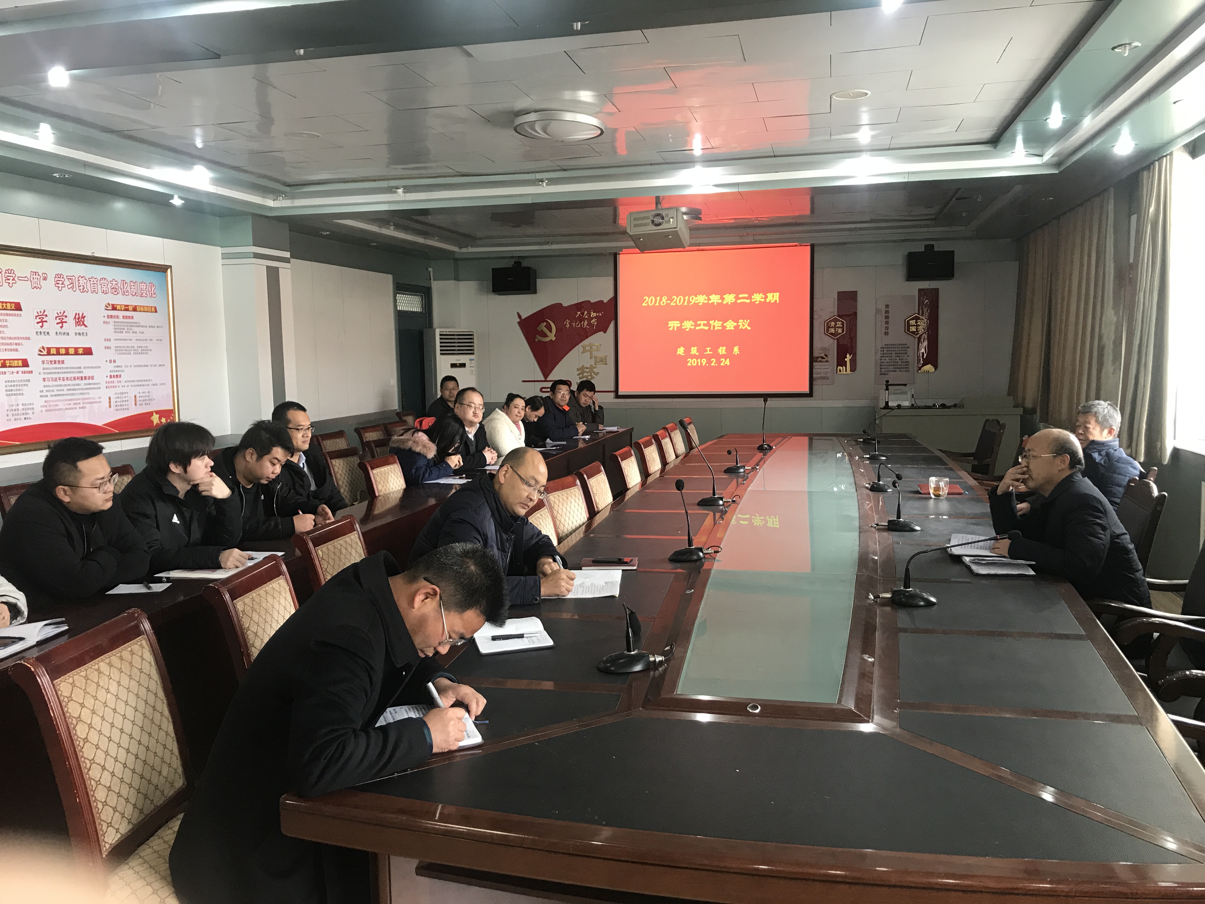 2月24日下午,建筑工程系組織全體專兼職教師在博學樓二樓會議室召開新學期開學工作會議。