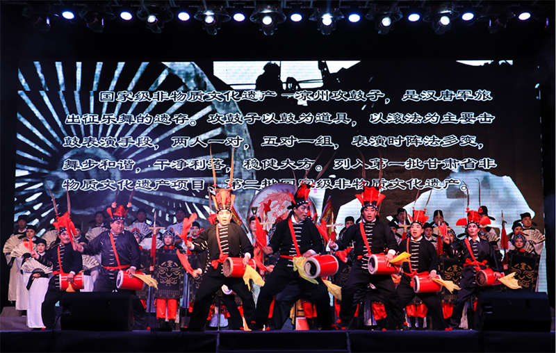近年來,學(xué)院師生創(chuàng)作、改編了許多反映地方特色和校園生活主題的節(jié)目。其中晚會上由我院教師自編原創(chuàng)的大型吟誦舞臺劇《金戈鐵馬入夢涼州》邀請了國家級非物質(zhì)文化遺產(chǎn)涼州攻鼓子助力表演,結(jié)合戲曲、舞蹈、器樂等形式,全方位展示了涼州文化深厚的底蘊(yùn)和鮮明的地域特色,涼州攻鼓子表演更是蕩氣回腸,讓現(xiàn)場師生充分領(lǐng)略了傳統(tǒng)文化的博大精深和獨(dú)特魅力。大學(xué)生藝術(shù)團(tuán)主持隊(duì)自編自演的詩歌朗誦《青春報(bào)告》,結(jié)合當(dāng)代大學(xué)生青春夢想、歷史使命的創(chuàng)作和聲情并茂的演繹,體現(xiàn)了新青年對于理想與擔(dān)當(dāng)?shù)娜陆庾x。大學(xué)生藝術(shù)團(tuán)曲藝隊(duì)自導(dǎo)改編的相聲《新生入學(xué)指南》,以詼諧幽默的形式講解了大一新生入學(xué)后的趣味生活,贏得了新同學(xué)們的共鳴和陣陣掌聲。