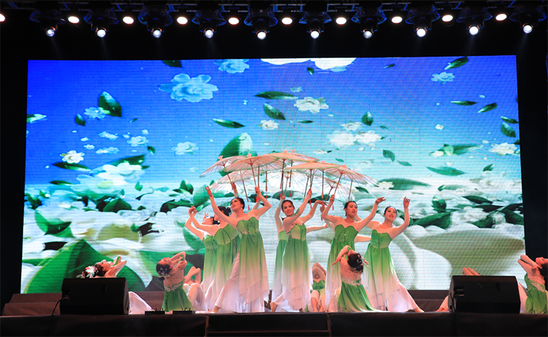 晚會中,在音樂學(xué)科專業(yè)頗有建樹的幾位老師表演了高水準(zhǔn)的器樂合奏《贊歌》,讓師生陶醉于器樂演奏的優(yōu)美旋律和意境,贏得了全場經(jīng)久不息的掌聲。大學(xué)生藝術(shù)團(tuán)舞蹈隊(duì)和聲樂隊(duì)表演的歌伴舞《紅旗飄飄》《美麗中國》激情四射、唯美動聽,詮釋了青年學(xué)子對祖國的熱愛和深情祝福。人文藝術(shù)教育系選送的現(xiàn)代舞《追逐夢想》用歡快的舞步展現(xiàn)了青年最富有朝氣、最富有夢想的精神風(fēng)貌,《茉莉花開》更是讓師生陶醉于傳統(tǒng)舞蹈的優(yōu)美意境。雙人舞表演《鄉(xiāng)·遠(yuǎn)方》舞蹈動作豪放、粗狂但不失委婉、細(xì)致,為我們呈現(xiàn)出“天之驕子”的氣概。校園好聲音教師組冠軍和學(xué)生組冠軍合唱的歌曲《你是我的眼》傳唱了職院好聲音,定格了大家的青春記憶。校園二把手樂隊(duì)帶來的歌曲《平凡之路》引起全場轟動,將晚會推向了高潮,同學(xué)們紛紛點(diǎn)亮了自己的手機(jī),現(xiàn)場匯成了一片充滿歌聲的“星?!?。
