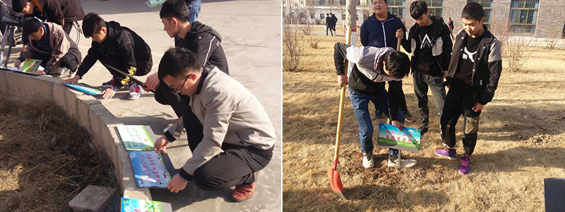 機械制造系開展校園草坪文明標(biāo)語樹立活動