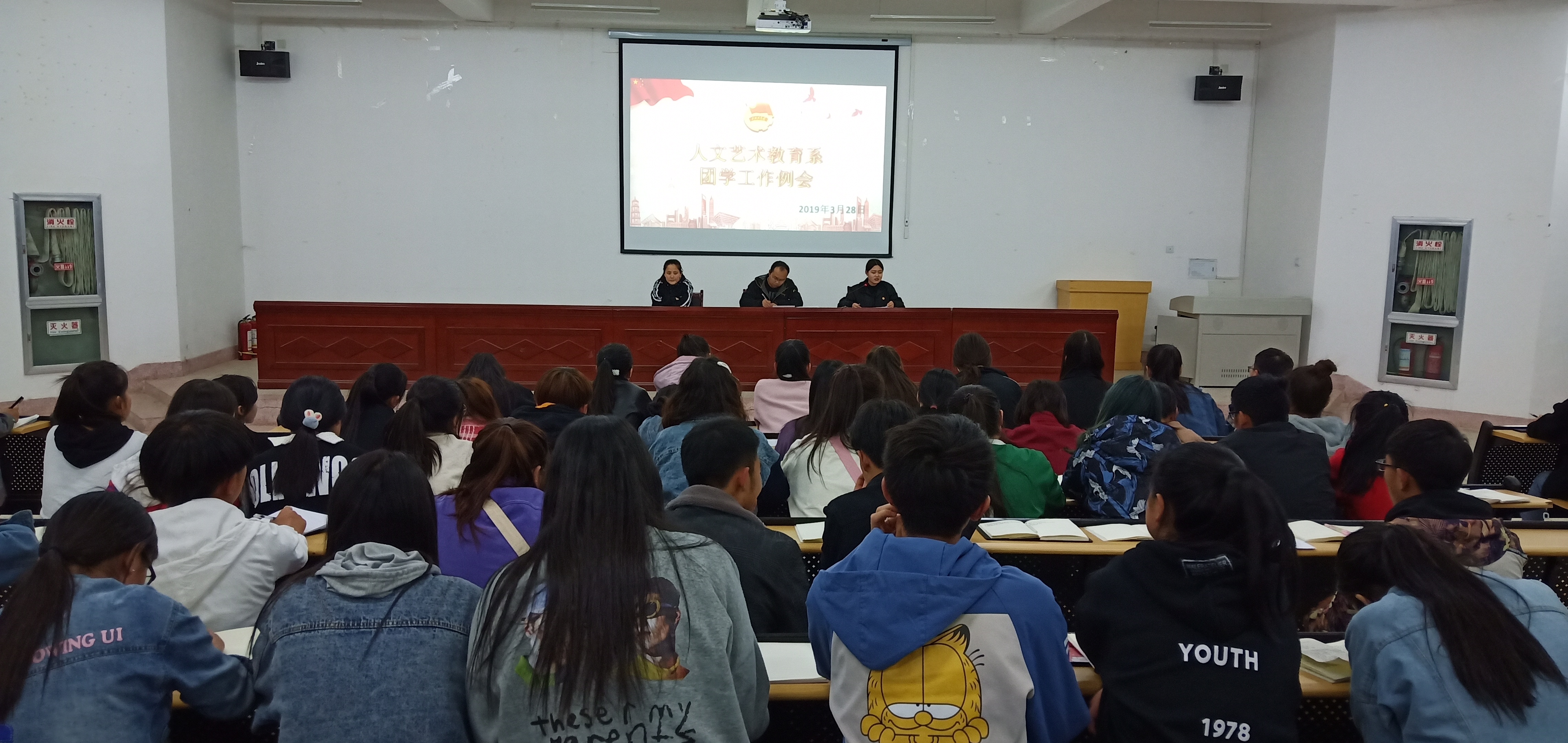 ? ? ? ?3月28日晚,人文藝術(shù)教育系在勵(lì)勤樓階梯教室召開(kāi)了三月份工作例會(huì),人文藝術(shù)教育系分團(tuán)委書(shū)記唐鑫基老師、分團(tuán)委全體學(xué)生干部,干事、17、18級(jí)各班班委共一百余人參加會(huì)議。會(huì)議安排部署了本學(xué)期分團(tuán)委共青團(tuán)常規(guī)工作和重點(diǎn)工作,討論通過(guò)了《人文藝術(shù)教育系2019年基層共青團(tuán)考核細(xì)則》。