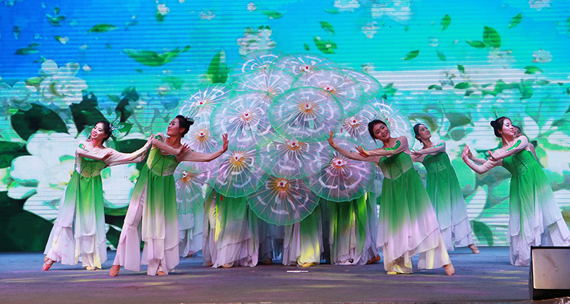 學(xué)院大學(xué)生藝術(shù)團(tuán)推送的節(jié)目詩(shī)朗誦《向祖國(guó)報(bào)告》和舞蹈《茉莉花開(kāi)》參加了文藝匯演?!断蜃鎳?guó)報(bào)告》表現(xiàn)了我院青年昂揚(yáng)向上的風(fēng)采,表達(dá)了新時(shí)代青年不忘初心,繼往開(kāi)來(lái),為實(shí)現(xiàn)中國(guó)夢(mèng)而奮斗的青春理想和堅(jiān)定信念。魯芬霞老師指導(dǎo)的《茉莉花開(kāi)》,姑娘們靈動(dòng)的身姿傾情獻(xiàn)舞,整個(gè)畫(huà)面美輪美奐,展現(xiàn)了中國(guó)舞蹈的獨(dú)特魅力,得到了觀眾的一直好評(píng)。