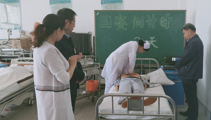 院領(lǐng)導(dǎo)高度重視此次比賽,全力支持大賽工作,時刻關(guān)注賽前訓(xùn)練情況。學(xué)院黨委書記趙明、副院長翟存祥、教務(wù)處處長仲生仁多次到訓(xùn)練現(xiàn)場觀看選手操作,并提出指導(dǎo)性的意見和建議。趙書記充分肯定了老師們的辛勤付出,要求輔導(dǎo)教師在訓(xùn)練中一定要堅持高標(biāo)準(zhǔn)、嚴(yán)要求;鼓勵選手發(fā)揮潛能,賽出水平,實現(xiàn)新的突破。護理系成立了以黨總支書記張建輝、系主任韓曉萍牽頭,由專業(yè)教師組成大賽輔導(dǎo)小組,認真解讀競賽規(guī)程,周密安排訓(xùn)練計劃,強化理論知識,細化操作項目,力爭在此次大賽中取得好成績。