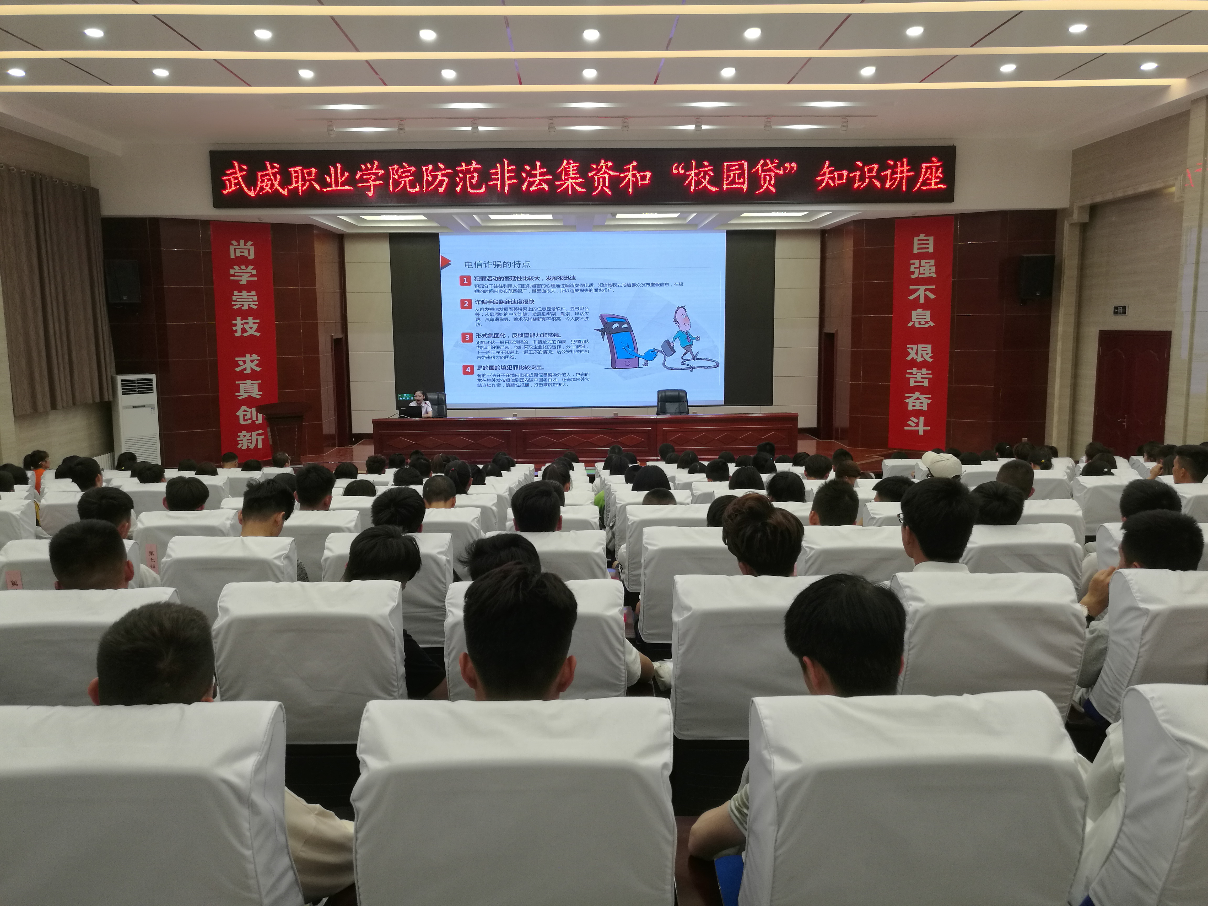 為深入貫徹落實甘肅省2019年防范非法集資和金融領(lǐng)域掃黑除惡宣傳月活動的有關(guān)精神,保護廣大師生的合法權(quán)益。6月9日晚,學(xué)院邀請中國農(nóng)業(yè)銀行武威支行風(fēng)險管理部工作人員朱琳在學(xué)院菁英廳作了關(guān)于防范非法集資和校園貸知識講座,學(xué)院副院長王永緒出席活動,保衛(wèi)處、計劃財務(wù)處負(fù)責(zé)同志及各系師生代表200余人聆聽了講座。