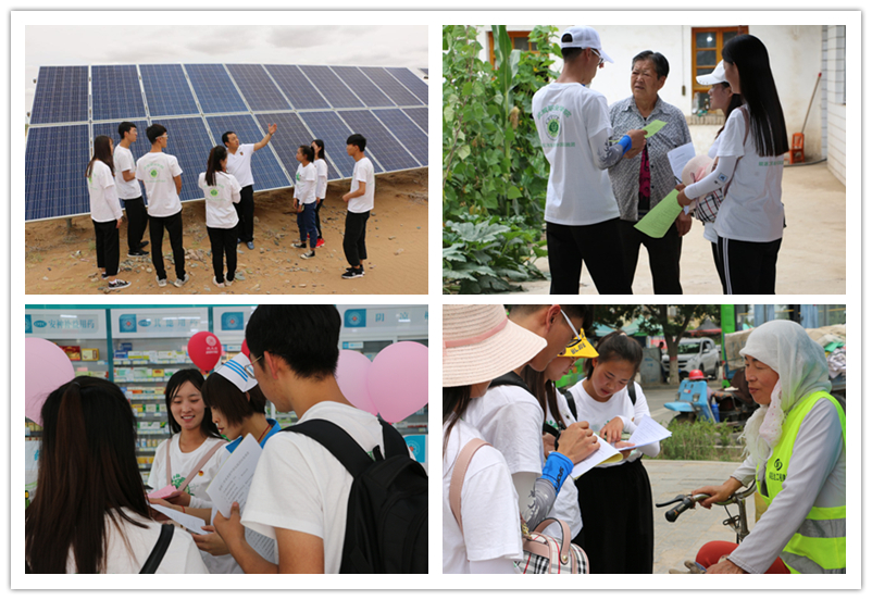 7月17-18日,實踐團前往武威泰豐新能源扶貧電站,了解"光伏+農(nóng)業(yè)"工程實施、電站運維管理情況,了解實施光伏扶貧項目在脫貧攻堅、造福廣大貧困群眾中帶來的良好經(jīng)濟效益、生態(tài)效益和社會效益。參觀結(jié)束后團隊成員深入武威市各社區(qū)、周邊鄉(xiāng)鎮(zhèn)發(fā)放宣傳資料、折頁,開展低碳環(huán)??破招麄骰顒印Mㄟ^現(xiàn)場答題的形式與市民互動,普及更多日常綠色環(huán)保生活知識,引導社會公眾綠色低碳消費,為建設低碳環(huán)保社區(qū)打下良好的基礎。