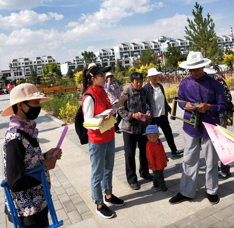 7月11日開始, 6名志愿者在指導(dǎo)老師的帶領(lǐng)下分別進(jìn)入倉巷社區(qū)銀城花園、天馬湖公園、古浪縣綠洲移民點(diǎn)、永豐鎮(zhèn)、發(fā)放鎮(zhèn)、天馬社區(qū)、清源鎮(zhèn)幸福家園社區(qū)、金沙社區(qū)、福利路社區(qū)、古城鎮(zhèn)祁山村、武南鎮(zhèn)、清水鎮(zhèn)等地開展了宣講實(shí)踐活動。通過擺放展板、實(shí)地講解、發(fā)放禁毒防艾宣傳材料、問卷調(diào)查、個(gè)案訪談、資料收集等方式,深入了解實(shí)踐地禁毒防艾最新形勢、相關(guān)工作開展情況、存在的實(shí)際問題。