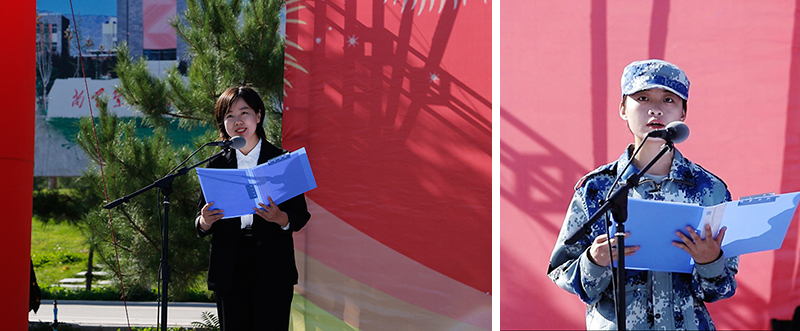 伴隨著莊嚴(yán)肅穆的國(guó)歌,大會(huì)正式拉開(kāi)帷幕。在激昂的音樂(lè)聲下,國(guó)旗護(hù)衛(wèi)隊(duì)向我們走來(lái),他們目光堅(jiān)毅、身姿矯健、步伐整齊有力,彰顯了須眉巾幗、志在四方的豪情壯志?!安煌跣摹⒗斡浭姑?,“尚學(xué)崇技、求真創(chuàng)新”,“立德樹(shù)人、服務(wù)發(fā)展、促進(jìn)就業(yè)、適應(yīng)需要”鏗鏘有力的口號(hào)生動(dòng)的展現(xiàn)了新時(shí)代大學(xué)生的青春風(fēng)貌。