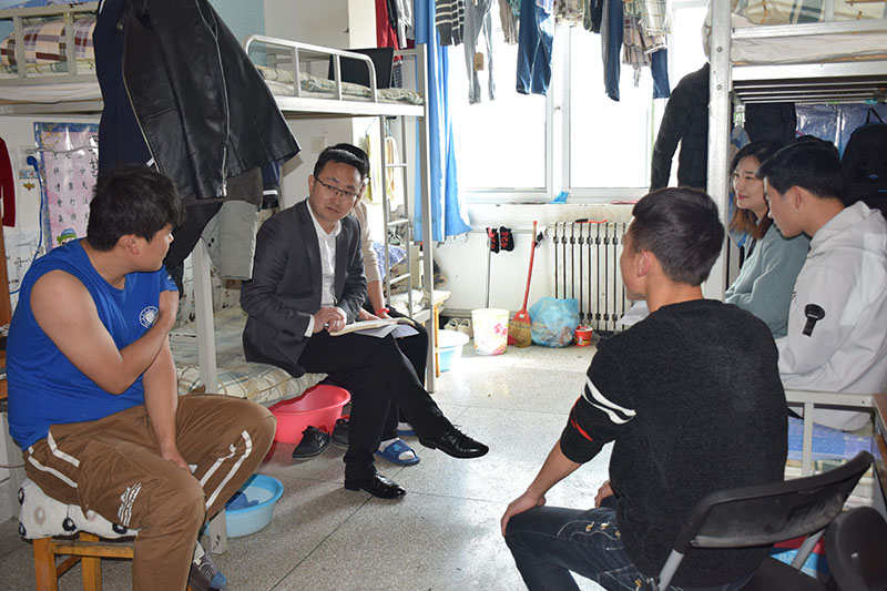 活動中,黨支部書記任陶宣讀《新能源與動力工程學院辦公室黨支部教師黨員聯(lián)系學生宿舍制度》,并對具體工作作出安排。他強調(diào)深入學生中要努力做到“六心”:了解學生要細心,思想教育要耐心,心理疏導要貼心,成才引導要熱心,平時相處要交心,幫困解難要有愛心。緊接著,全體黨員進入3#公寓和7#公寓,開展三幫(幫思想、幫學習、幫生活)和兩導(對學生進行長才引導和心理疏導)工作。黨員們分別到所聯(lián)系的宿舍,與學生展開親切的交流、座談,詳細詢問他們在生活和學習中存在的問題,并對同學們在教育教學和學生管理方面提出的意見建議做了詳細的記錄。
