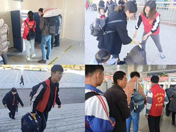 下午我們?nèi)チ宋渫疖囌鹃_展文明引導(dǎo)服務(wù)活動,志愿者們主要協(xié)助工作人員進(jìn)行安檢、維護(hù)站內(nèi)秩序、幫助旅客提行李、以及引導(dǎo)旅客購取票,車站工作人員和旅客的贊不絕口。