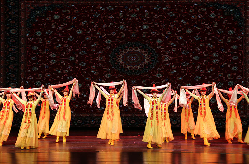 大型歌舞劇《裕固風華》是河西學院師生歷經(jīng)三年精心打造的首部原創(chuàng)教學劇目,是教育部、文化和旅游部、財政部高雅藝術(shù)進校園活動省級巡演劇目,是省委宣傳部和省文旅廳“春綠隴原”展演劇目,是甘肅省學校美育改革與發(fā)展重大項目、甘肅省高校美育教育舞臺示范精品。全劇由《序》《東遷》《家園》《傳說》《婚禮》五個篇章組成,以裕固族傳統(tǒng)民歌、舞蹈、民俗為載體進行創(chuàng)作和改編,以情景歌舞的形式表現(xiàn)裕固族的歷史變遷和民俗文化,以講述、吟誦、歌舞的手法,再現(xiàn)了裕固族的發(fā)展歷史和多姿多彩的獨特文化,以高品位的藝術(shù)水準弘揚、展現(xiàn)了中華民族傳統(tǒng)文化的優(yōu)良基因和時代活力。