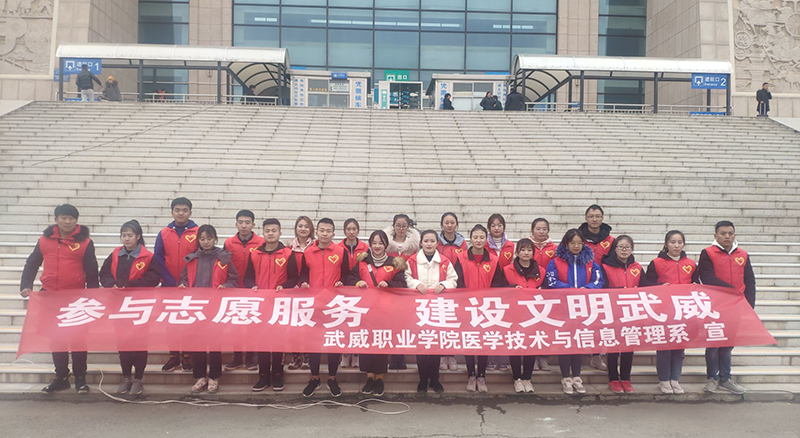 為強化大學生思想道德素質和志愿服務精神,增強大學生奉獻服務精神,創(chuàng)建和諧、文明、美麗校園,11月23日,武威職業(yè)學院醫(yī)學技術與信息管理系團總支書記石瑞山老師帶領系分團委、學生會骨干及18、19級入黨積極分子在武威市火車站、汽車站開展了以“參與志愿服務,建設文明武威”為主題的志愿者服務活動。
