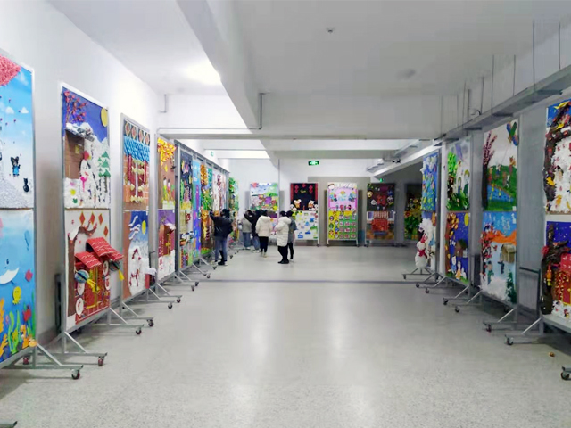為全面貫徹黨的十九大報告提出的幼有所育、學有所成戰(zhàn)略方針,推進我院“不忘初心、牢記使命”主題教育,堅守“為黨育人、為國育才”初心使命,推動我院學前教育專業(yè)師資培養(yǎng)質量,促進學生專業(yè)成長,基于成果導向教育理念(OBE),展示學前教育專業(yè)教學改革成果,體現(xiàn)專業(yè)特色,2019年12月5日至10日,在人文藝術教育系知新樓一樓大廳開展學前教育特色專業(yè)《幼兒園環(huán)境創(chuàng)設》課程教學成果展示活動,本次展覽作品由藍明東副教授和王德強副教授指導完成,共展出主題墻飾作品百余幅。人文藝術教育系書記胡靜峰、副主任李欣、美術教研室全體教師參加了活動,并觀看了作品。