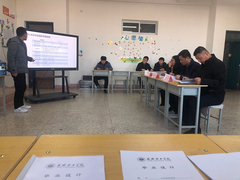 2019年12月17日上午,能源工程系在行樹樓403、405教室開展了2020屆畢業(yè)生畢業(yè)設計答辯活動,2020屆光伏發(fā)電技術(shù)與應用專業(yè)全體畢業(yè)生分11個小組參加了本次畢業(yè)設計答辯。
