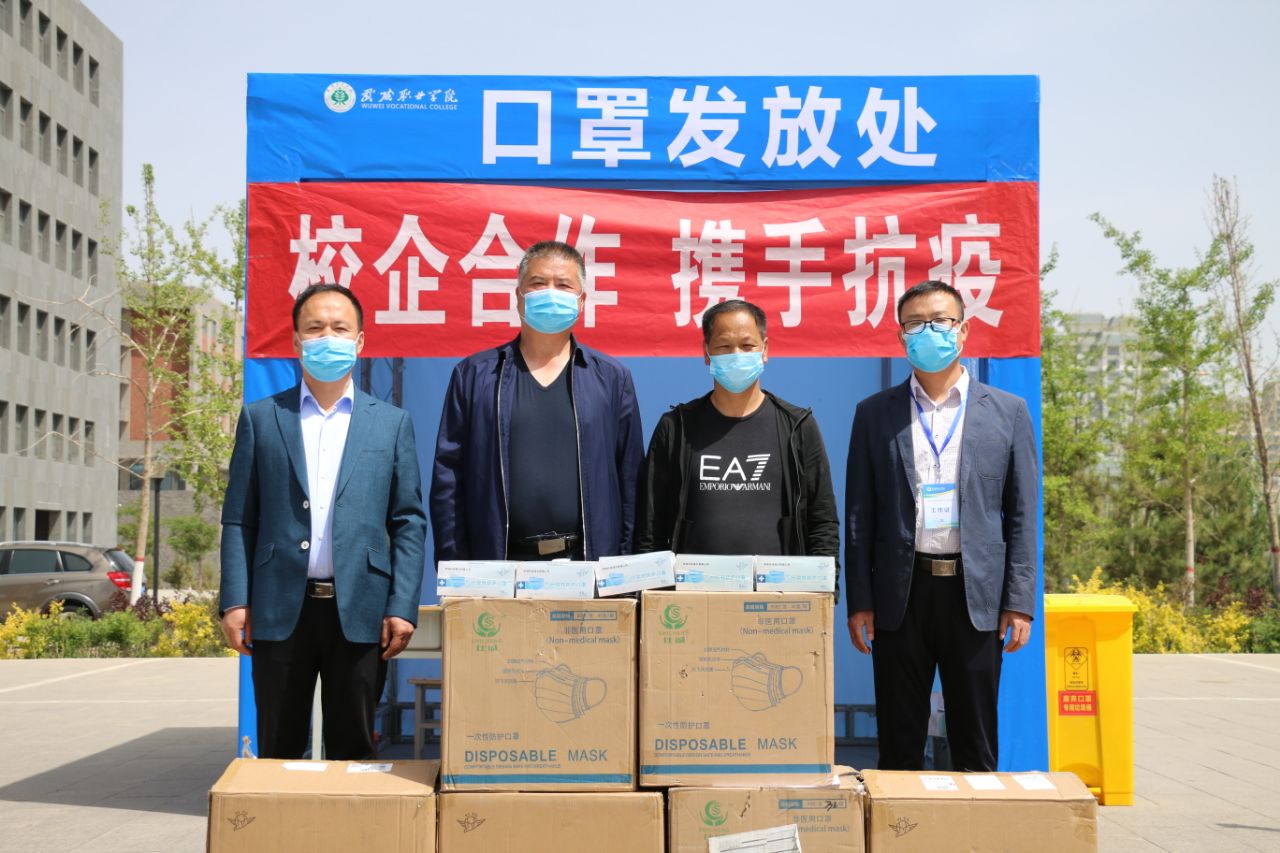 5月14日,學(xué)生返校報(bào)到第一天,武威華瑞服裝公司向?qū)W院捐贈一次性防護(hù)口罩10000個(gè),遮陽棚20頂,助力學(xué)生返校報(bào)到工作。簡短的捐贈儀式在報(bào)到現(xiàn)場舉行,副院長王守云,學(xué)工處、保衛(wèi)處負(fù)責(zé)人代表學(xué)院接收捐贈物資。