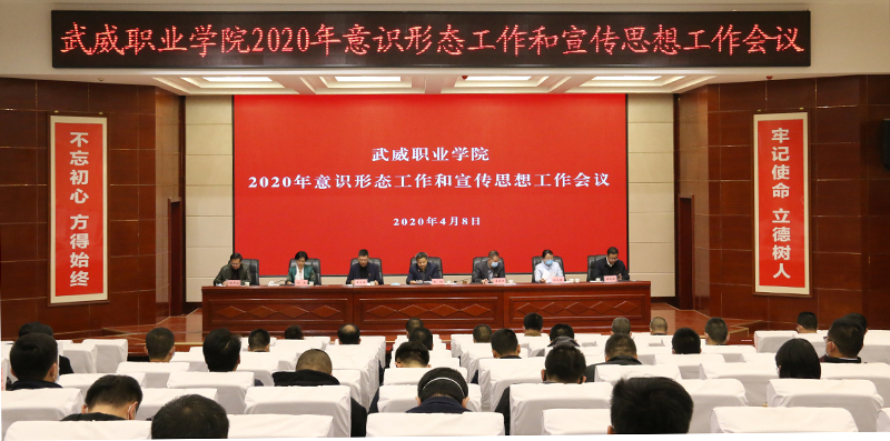 會議要求,2020年,學(xué)院宣傳思想工作要堅(jiān)持以習(xí)近平新時代中國特色社會主義思想為指導(dǎo),全面貫徹黨的教育方針,落實(shí)“立德樹人”根本任務(wù),全面貫徹落實(shí)全國全省教育大會精神、宣傳部長會議精神,自覺承擔(dān)起“舉旗幟、聚民心、育新人、興文化、展形象”的使命任務(wù),嚴(yán)格履行意識形態(tài)工作責(zé)任制。持續(xù)開展“時代楷模”八步沙林場“六老漢”三代人治沙造林先進(jìn)群體事跡宣傳,大力弘揚(yáng)新時代武威精神。聚焦決勝全面建成小康社會、決戰(zhàn)脫貧攻堅(jiān),著力推動習(xí)近平新時代中國特色社會主義思想深入人心。著力培育和弘揚(yáng)社會主義核心價值觀,著力加強(qiáng)輿論引導(dǎo)和輿論斗爭,著力鞏固壯大主流意識形態(tài),著力推進(jìn)文明校園創(chuàng)建助力武威市創(chuàng)建全國文明城市,為實(shí)現(xiàn)全面建成小康社會和學(xué)院高質(zhì)量發(fā)展提供堅(jiān)強(qiáng)思想保證和強(qiáng)大精神動力。