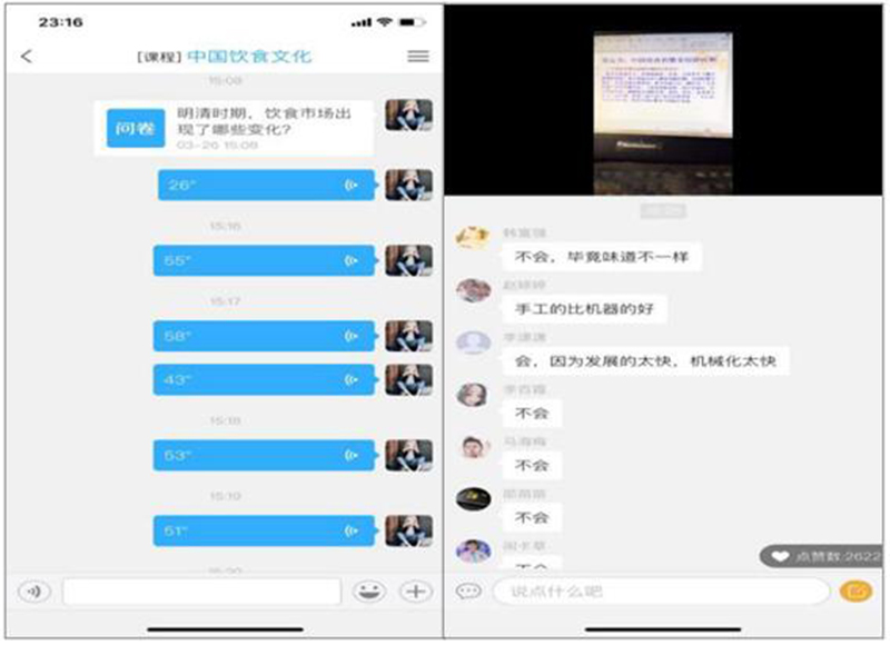 經(jīng)濟(jì)管理系張海燕老師,充分利用網(wǎng)絡(luò)資源上好線上課程,巧妙引導(dǎo)學(xué)生提高教學(xué)效果。利用“自建+在線資源優(yōu)選”的方式豐富《隴原民俗文化》《中國(guó)飲食文化》兩門課程的線上教學(xué)資源,并采用錄屏方式將網(wǎng)絡(luò)資源進(jìn)行加工,為自建課程添加教學(xué)元素。在課堂講授過程中,根據(jù)教學(xué)內(nèi)容與個(gè)人喜好靈活選擇直播、語音教學(xué)、自學(xué)+答疑等授課方式。為達(dá)到良好教學(xué)的效果,課中通過圖片、視頻、音頻、形式多樣的教學(xué)活動(dòng)、趣味性作業(yè)等激發(fā)學(xué)生自主學(xué)習(xí)的興趣,活躍課堂氣氛,并掌握學(xué)生學(xué)習(xí)動(dòng)態(tài)。