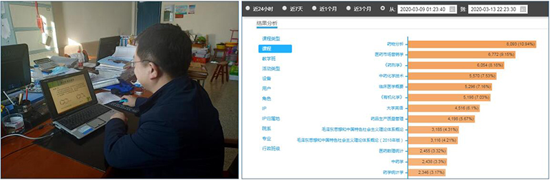 藥學(xué)系本周內(nèi)按照學(xué)院要求,認真梳理了前兩周的在線教學(xué)中存在的不足和問題,仔細研究了解決問題的辦法措施,加強了在線教學(xué)組織與管理工作,修訂完善了在線教學(xué)實施方案,做到課程“應(yīng)上盡上,能上盡上”。通過后臺監(jiān)控數(shù)據(jù)分析,本周全系課程開課率為94.4%,教師主要采用釘釘群直播實施在線教學(xué),業(yè)務(wù)熟練度較前兩周有明顯提升;學(xué)生學(xué)習(xí)熱情較高,周內(nèi)平均到課率為93%;通過抽查教師教學(xué)組織情況可以發(fā)現(xiàn),教師準備充分,教學(xué)資源充足,師生互動多,學(xué)生學(xué)習(xí)任務(wù)完成率較高。接下來藥學(xué)系將進一步推動教師更新教學(xué)理念,實施教學(xué)改革,充分利用教學(xué)管理數(shù)據(jù)開展質(zhì)量監(jiān)控;鼓勵教師加大課堂教學(xué)設(shè)計與組織的研究,增加與同學(xué)的課堂互動和情感交流,促進學(xué)生對線上課堂的適應(yīng)性,提升線上課堂滿意度。