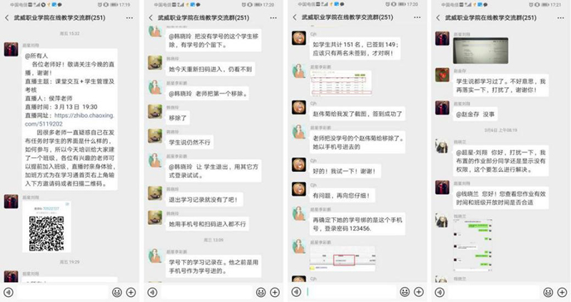 2月15日-20日,各系先后制定完成本系在線教學(xué)工作方案和教學(xué)計(jì)劃表,教務(wù)處進(jìn)一步修訂完善了學(xué)院在線教學(xué)工作實(shí)施方案,并在超星技術(shù)人員支持下,對學(xué)院252名專兼職教師開展線上教學(xué)技能和教學(xué)平臺使用培訓(xùn)。教務(wù)處向各教學(xué)系下發(fā)了教師版和學(xué)生版《武威職業(yè)學(xué)院在線教學(xué)平臺使用指南》,繼續(xù)優(yōu)化完善學(xué)院在線教學(xué)平臺的數(shù)據(jù)對接、課程搭建、資源補(bǔ)充和系統(tǒng)性能測試工作,并建立了技術(shù)溝通微信群,為教師開展在線教學(xué)提供技術(shù)指導(dǎo)。2月22日,學(xué)院召開專門會議安排部署疫情期間在線教學(xué)工作,印發(fā)《武威職業(yè)學(xué)院新型冠狀病毒肺炎疫情防控期間在線教學(xué)工作實(shí)施方案》。