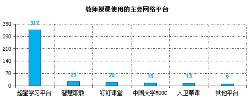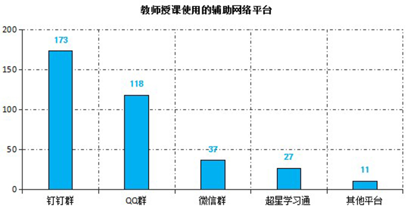 截止3月6日,教師使用武威職業(yè)學(xué)院在線教學(xué)平臺建設(shè)在線課程226門,使用超星學(xué)習(xí)通開展教學(xué)317次,釘釘課堂30次,智慧職教23次,中國大學(xué)MOOC15次,人衛(wèi)慕課13次,其他平臺9次。任課教師還選用釘釘群、QQ群或微信群等作為課程輔助交流平臺實(shí)施教學(xué)組織與管理。在線教學(xué)過程中,除開始時部分時段因同時在線人數(shù)過多導(dǎo)致網(wǎng)絡(luò)波動外,其他時間教學(xué)平臺均能穩(wěn)定運(yùn)行,較好的保障了在線教學(xué)的順利實(shí)施。