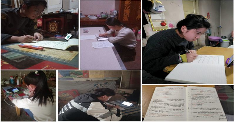 學(xué)生在家利用手機(jī)積極完成學(xué)習(xí)任務(wù)