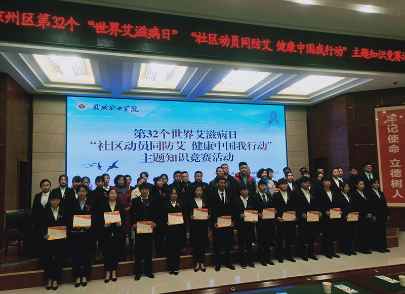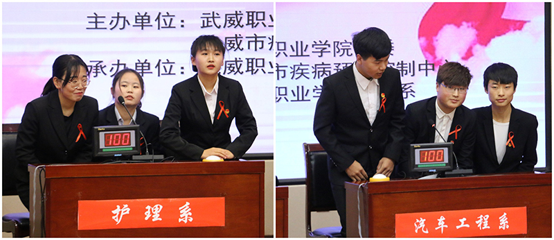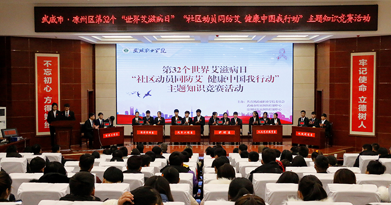 為持續(xù)深入推進(jìn)大學(xué)生艾滋病預(yù)防教育工作,迎接第32個(gè)世界艾滋病日的到來, 12月1日晚,學(xué)院開展了艾滋病知識競賽活動(dòng),學(xué)院副院長王永緒、王守云,市疾控中心領(lǐng)導(dǎo)參加活動(dòng)。此次活動(dòng)由武威職業(yè)學(xué)院與武威市疾控中心聯(lián)合主辦,護(hù)理系承辦,活動(dòng)的主題為“社區(qū)動(dòng)員同防艾 .健康中國我行動(dòng)”。學(xué)院團(tuán)委及部分系老師,各系學(xué)生代表觀看了比賽。