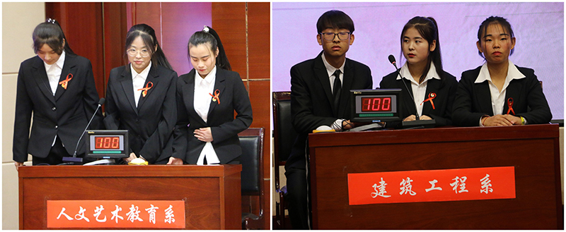 本次活動(dòng)面向全院開展,經(jīng)過前期初賽,最終有6支代表隊(duì)進(jìn)入到此次決賽中。決賽分為個(gè)人必答題、小組搶答題、風(fēng)險(xiǎn)題三個(gè)環(huán)節(jié),內(nèi)容涵蓋艾滋病預(yù)防、檢測、治療等多個(gè)方面。競賽中,各隊(duì)選手沉著冷靜、對答如流,配合默契,臺下同學(xué)們秩序井然,展示了我院學(xué)生良好的精神風(fēng)貌。經(jīng)過激烈的角逐,護(hù)理系代表隊(duì)獲得此次競賽活動(dòng)的一等獎(jiǎng),經(jīng)濟(jì)管理系和機(jī)械制造系獲得二等獎(jiǎng),人文藝術(shù)教育系、能源工程系和汽車制造系獲得三等獎(jiǎng)?;顒?dòng)結(jié)束后,各位領(lǐng)導(dǎo)和參賽選手進(jìn)行合影留念。
