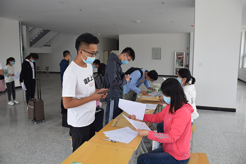在報到點,由班主任及報道組成員查驗學生的健康碼、疫情防控行程證明、疫情防控行程卡等內容,詳細核查學生乘坐的長途汽車及火車等公共交通工具車號及相關憑證,并將所有票據留存。在查驗合格后為學生辦理通行證,完成報到程序,學生方可憑通行證入住宿舍。