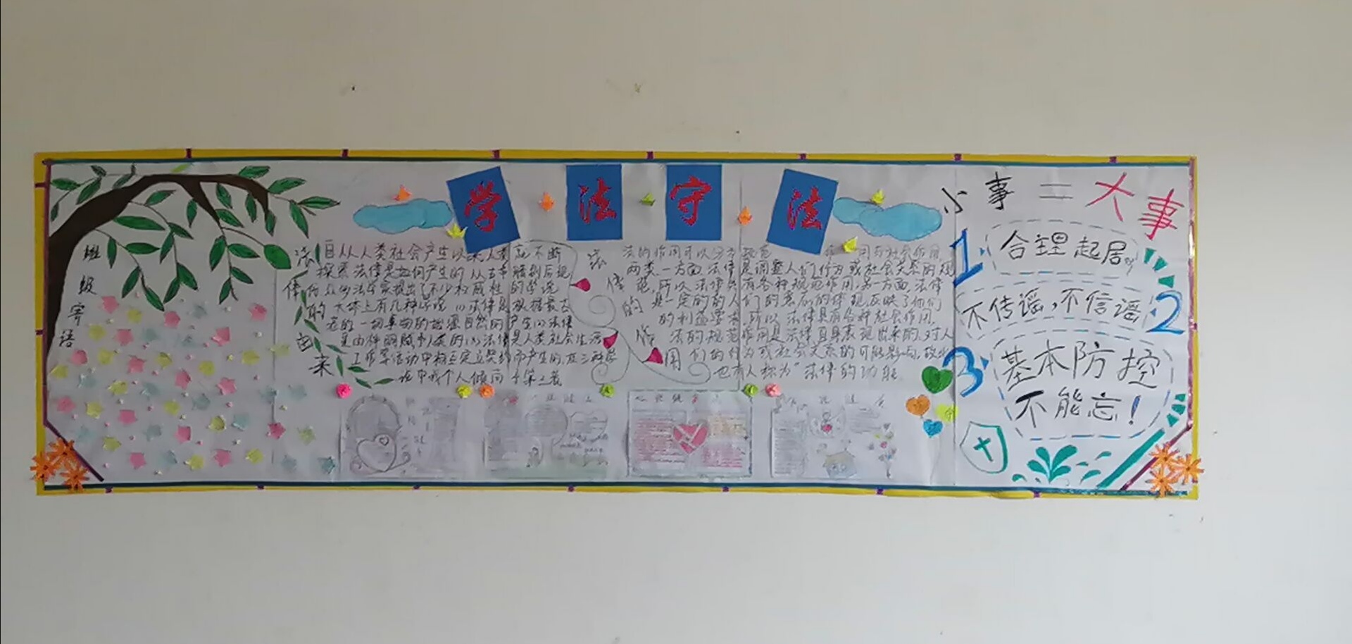 ?此次主題板報活動的開展,進(jìn)一步充實(shí)了板報的宣傳教育功能,展現(xiàn)了我系學(xué)子良好的精神風(fēng)貌,培養(yǎng)了大學(xué)生知法守法的優(yōu)良品質(zhì),營造了健康、積極進(jìn)取的學(xué)風(fēng),更加提升了學(xué)生的法律常識。我系將借此活動為契機(jī),加強(qiáng)我系學(xué)生的法律道德意識,引導(dǎo)我系學(xué)生知法于心,守法于行。
