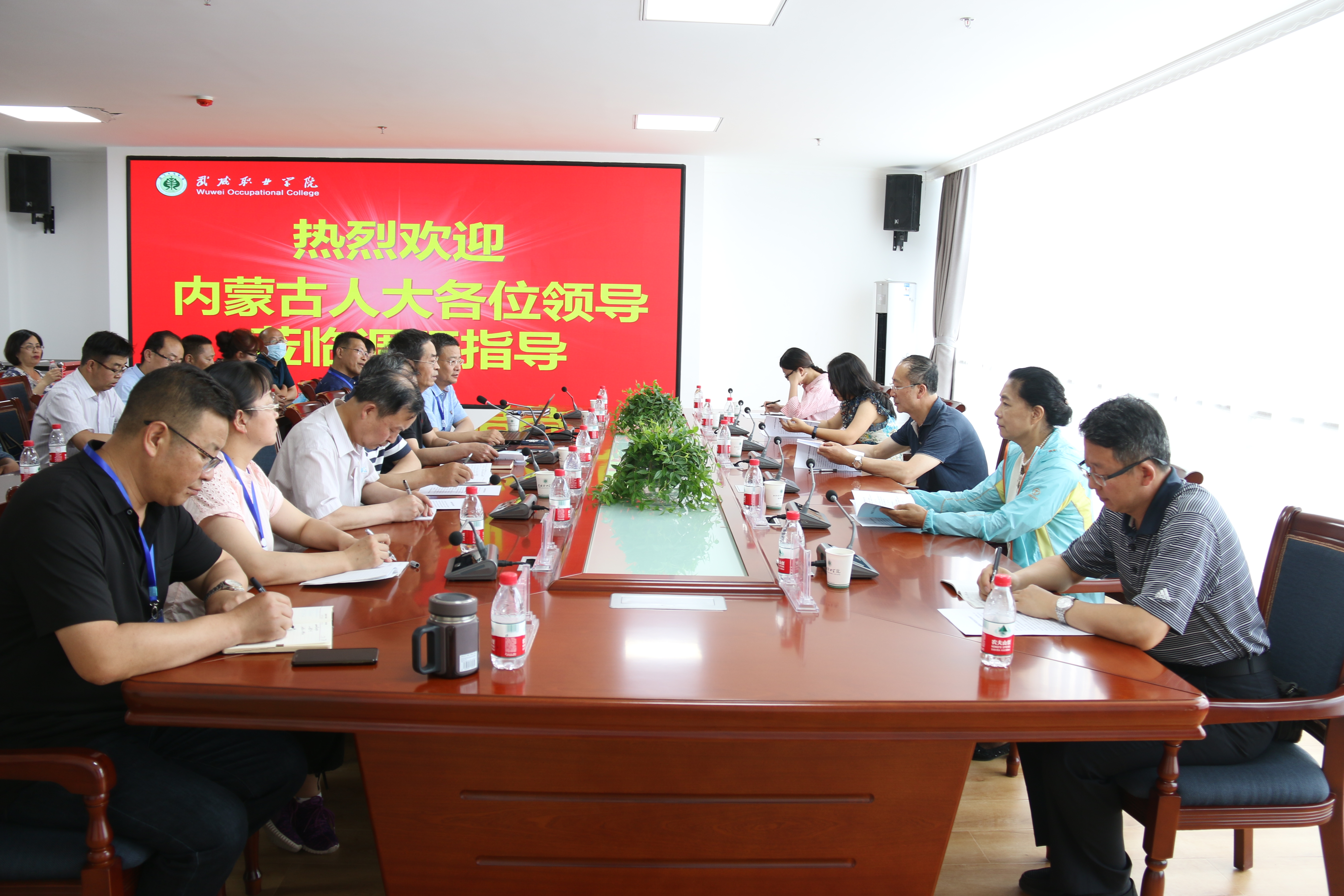 6月19日下午,內(nèi)蒙古自治區(qū)人大常委會(huì)教科文衛(wèi)工委副主任徐雪峰帶隊(duì)自治區(qū)人大常委會(huì)教科文衛(wèi)工委二級(jí)巡視員蘇燕,自治區(qū)教育廳高等教育處副處長(zhǎng)徐劼,自治區(qū)財(cái)政廳教育處李宗迪,自治區(qū)人大常委會(huì)教科文衛(wèi)工委二級(jí)主任科員趙彥卓一行到學(xué)院調(diào)研,武威市人大常委會(huì)副主任張承潛,武威市人大常委會(huì)教科文衛(wèi)工委副主任趙光輝一同調(diào)研。學(xué)院黨委書記、院長(zhǎng)趙明,黨委委員、副院長(zhǎng)王永緒、田迎春、何毅,紀(jì)委書記、監(jiān)察專員陳曉煜陪同調(diào)研。