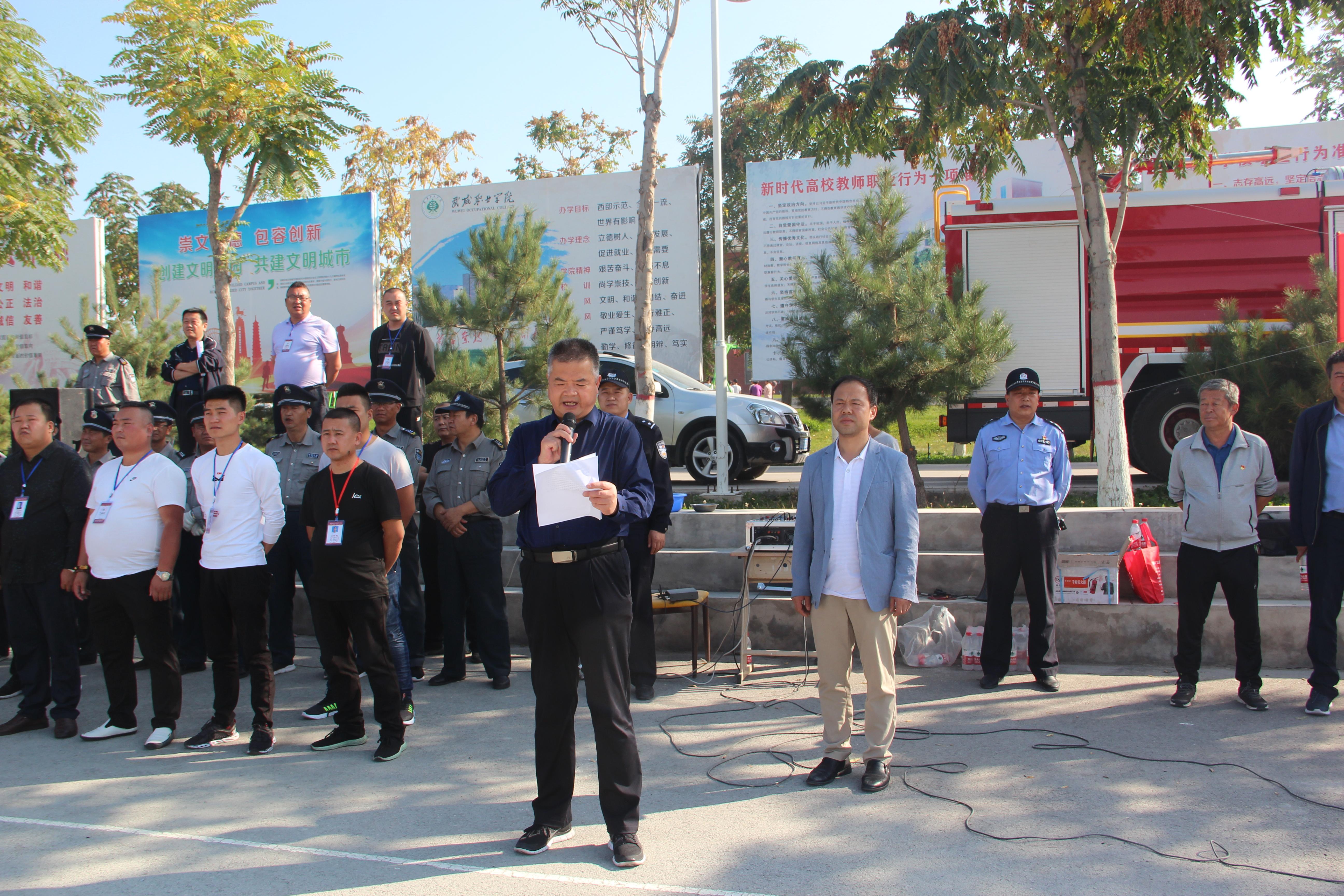 9月25日下午,學(xué)院聯(lián)合武威市消防支隊舉行了2019年秋季消防應(yīng)急疏散和滅火演練活動。學(xué)院副院長王守云擔(dān)任總指揮,保衛(wèi)處、學(xué)生工作處、各系負責(zé)同志及轄區(qū)派出所民警、街道社區(qū)工作人員現(xiàn)場觀摩了演練,約4000多名2019級新生及學(xué)生管理工作人員、食堂工作人員參加了演練?。