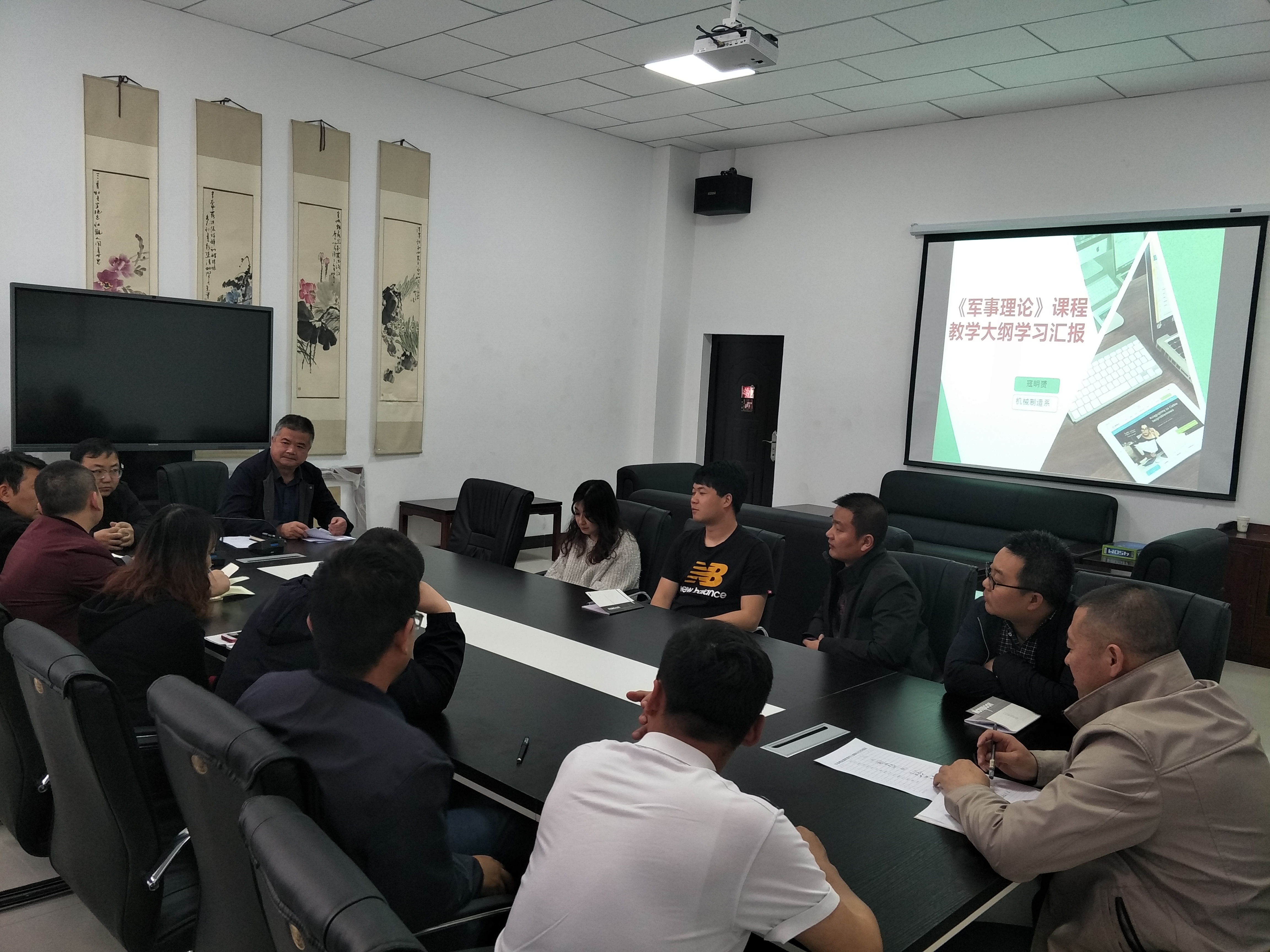 在會上,王守云傳達了甘肅省教育廳、甘肅省軍區(qū)戰(zhàn)備建設(shè)局轉(zhuǎn)發(fā)教育部、中央軍委國防動員部印發(fā)《普通高等學(xué)校軍事課教學(xué)大綱》的通知精神??苊髭S老師圍繞新《大綱》制定的背景特點、主要內(nèi)容、亟需把握的主要問題等,進行報告交流。